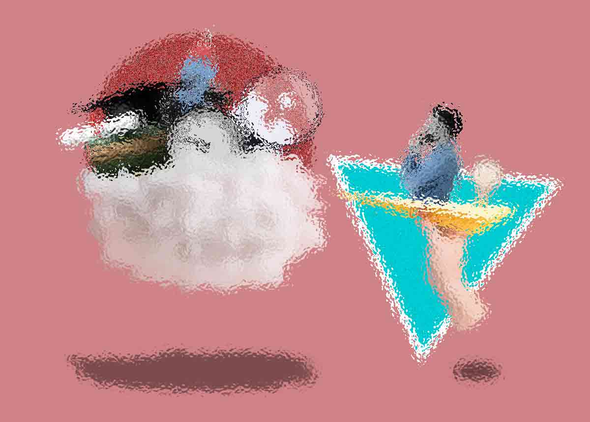 Abstract art, collage with female portrait and mountains, generative ai